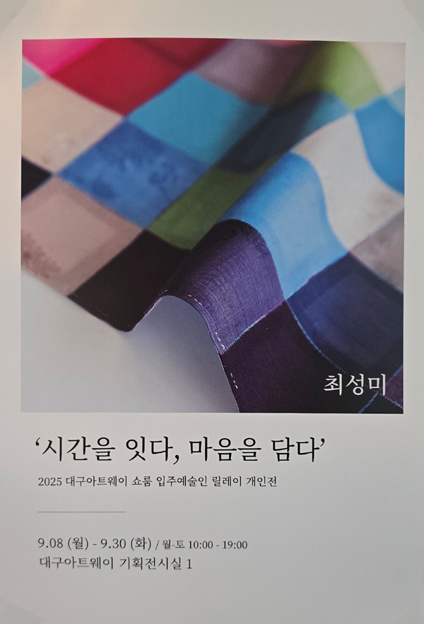 | 2025 대구아트웨이 쇼룸 입주예술인 릴레이 개인전 / 묵혀둔 花 / 김태연展 / 기획전시실 2 (18) | 2025.10.21 |