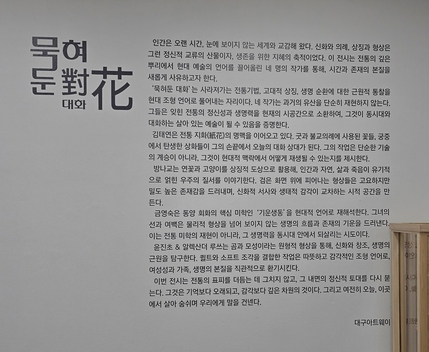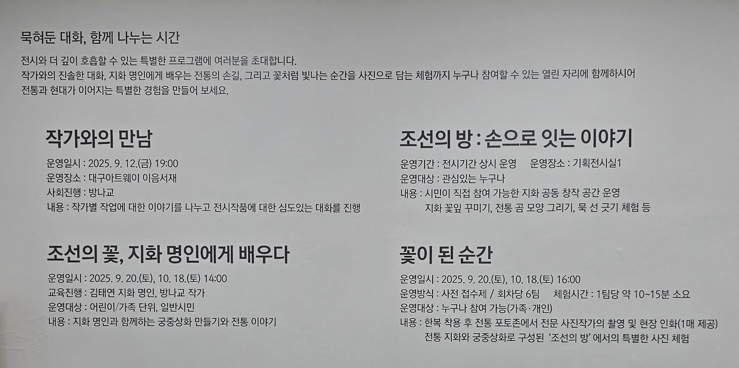| 2025 대구아트웨이 쇼룸 입주예술인 릴레이 개인展 / 묵혀둔花 / 금영숙展 / 아트웨이 기획전시실 4 (26) | 2025.10.23 |