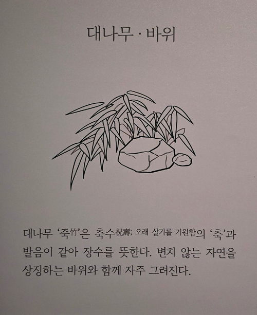 반면 화면에는 장수와 복록福祿을 기원하는 길상적 소재를 가득 채워 미묘한 긴장감을 주었다.