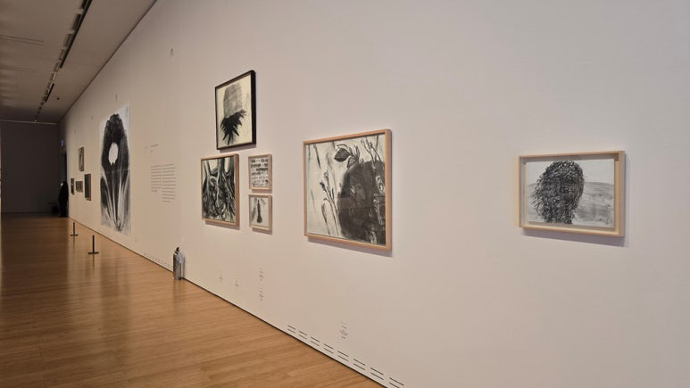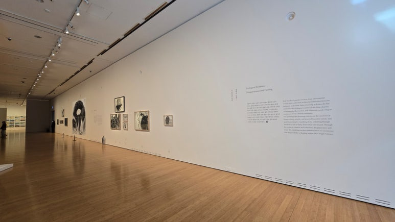 [대구미술관 2층 2전시실 내부에서 담은 출입구쪽 전시 작품 전경]