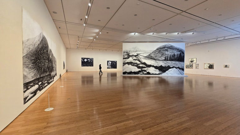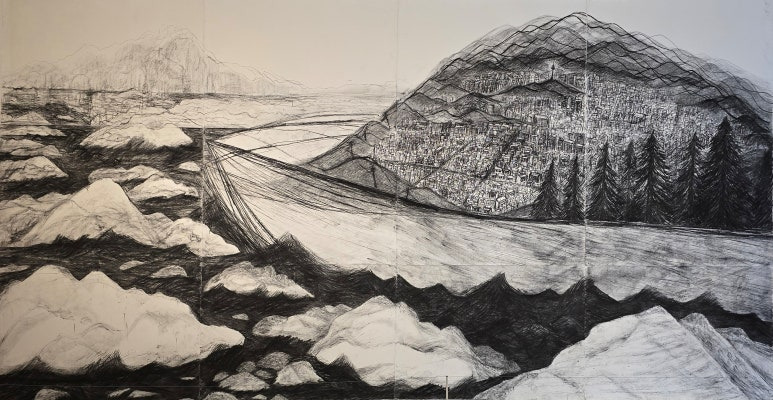 [Glacier and City / 2025 / Charcoal on Korean paper / 450x856cm / 빙하와 도시 / 클릭하셔서 크게 보셔요]