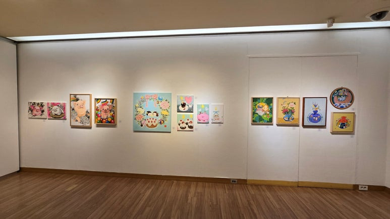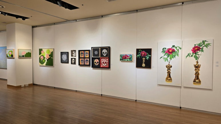 [출입구에서 담은 전시실 내부 좌측 전시 작품 전경]