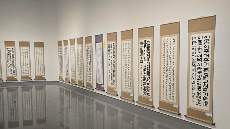 [출입구에서 담은 전시실 내부 좌측 전시 작품 전경]