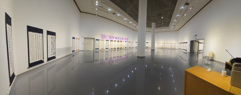 [출입구에서 파노라마로 담은 전시실 내부 전시 작품 전경]