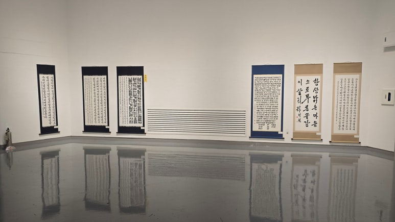 [출입구에서 담은 전시실 내부 우측 전시 작품 전경]